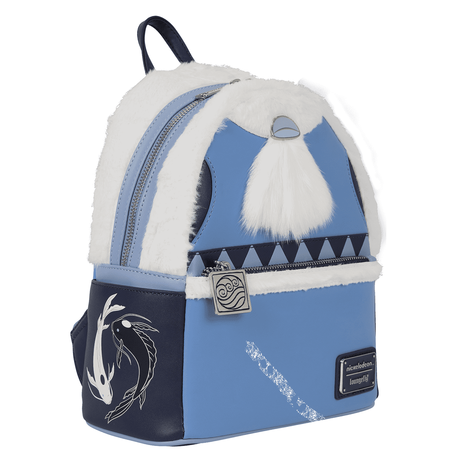 This mini backpack is inspired by the ensembles of the Water Tribe from Avatar: The Last Airbender. You’ll find applique and plush details, and the Water Tribe symbol illustrated on the back of the bag.