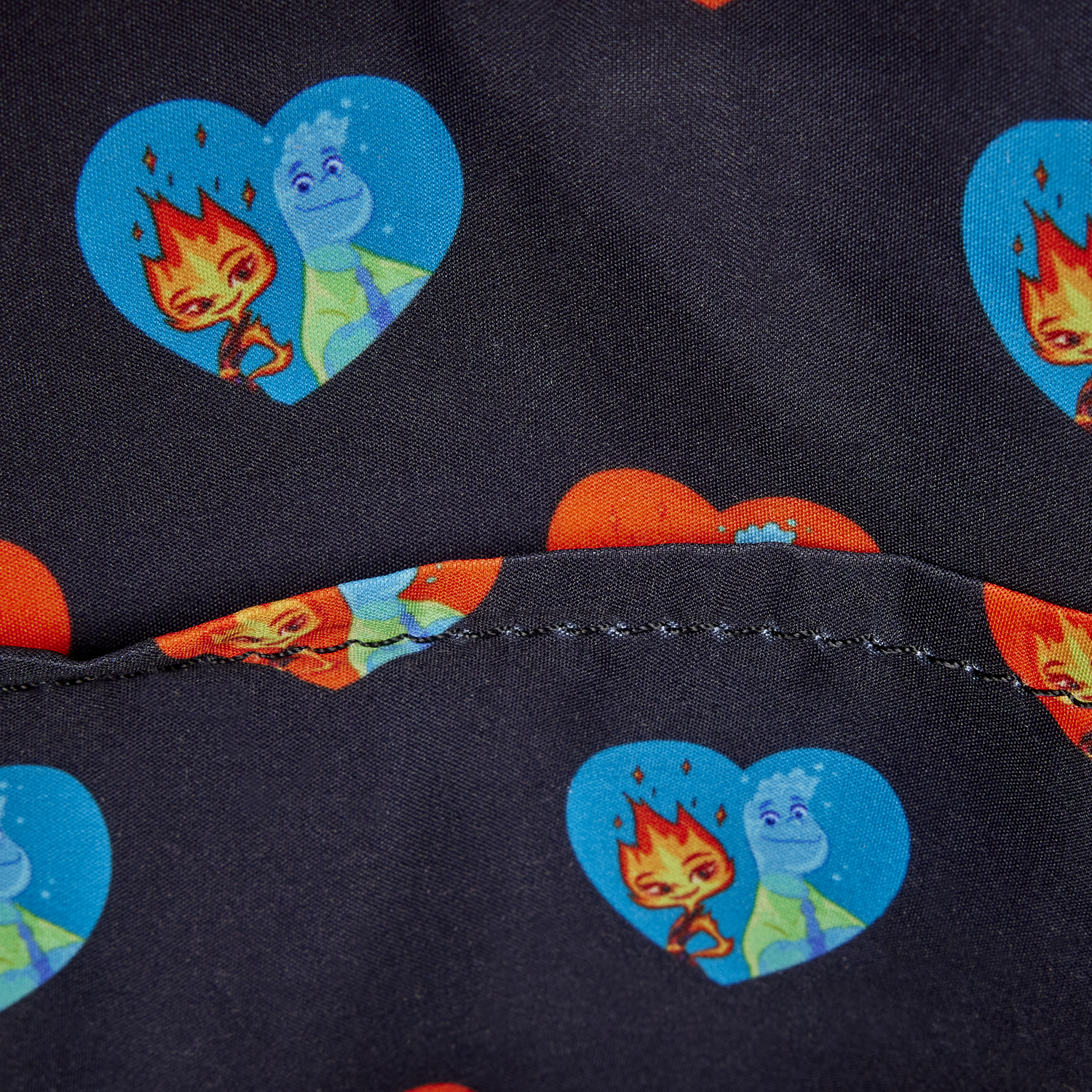 This mini backpack features Ember and Wade standing together in a heart-shaped front pocket. The bag is divided by their respective colors, orange and blue, and fade together into an ombre effect. You’ll find symbols of Ember and Wade on the side pockets. Plus, for extra fun, one strap is orange and the other strap is blue!