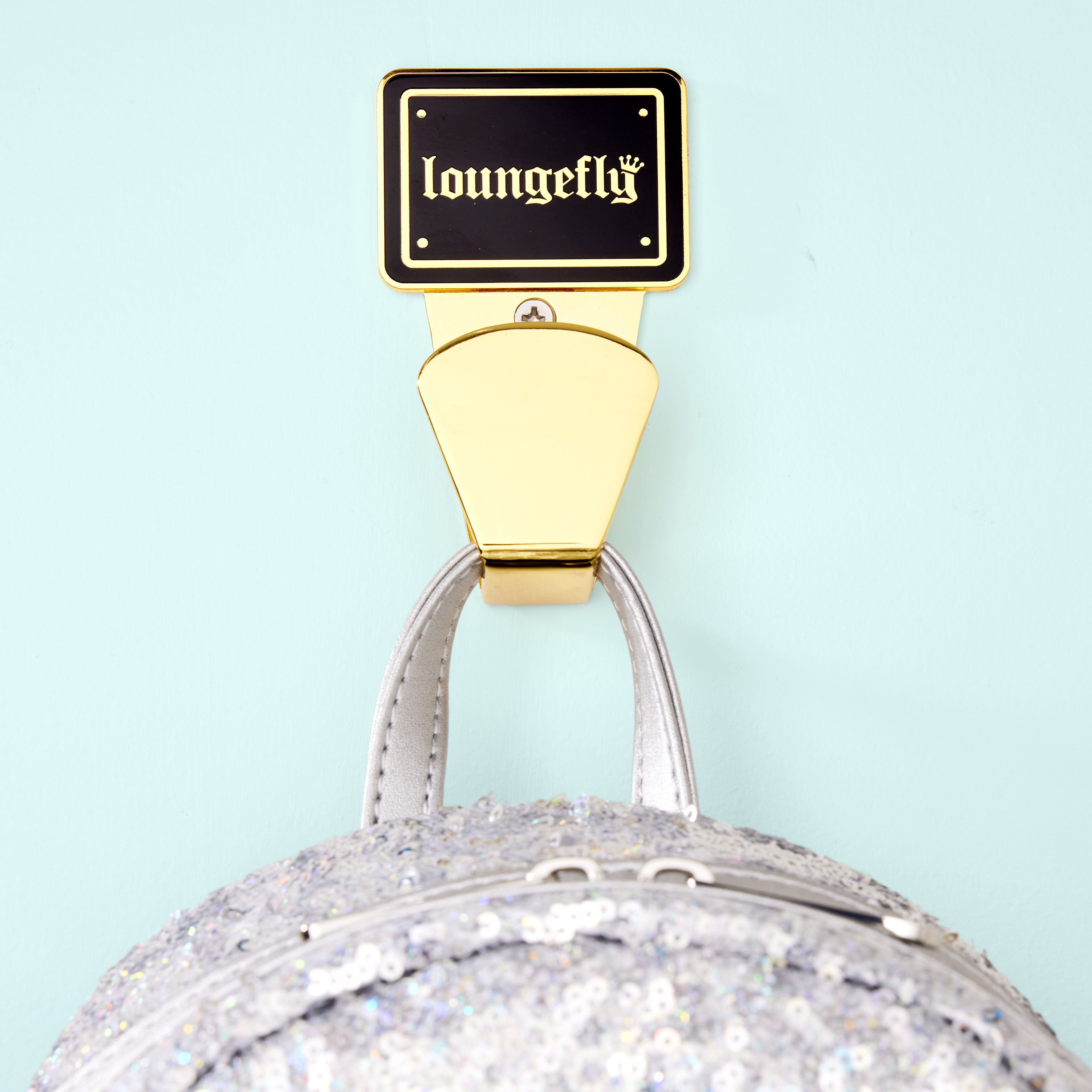 Give your favorite Loungefly bag a stylish lift with our Loungefly Gold Metal Wall Hook. This wall accessory features the signature Loungefly plaque and sturdy gold-colored metal backing and hook. It’s perfect for displaying and organizing Loungefly bags and apparel, effortlessly.