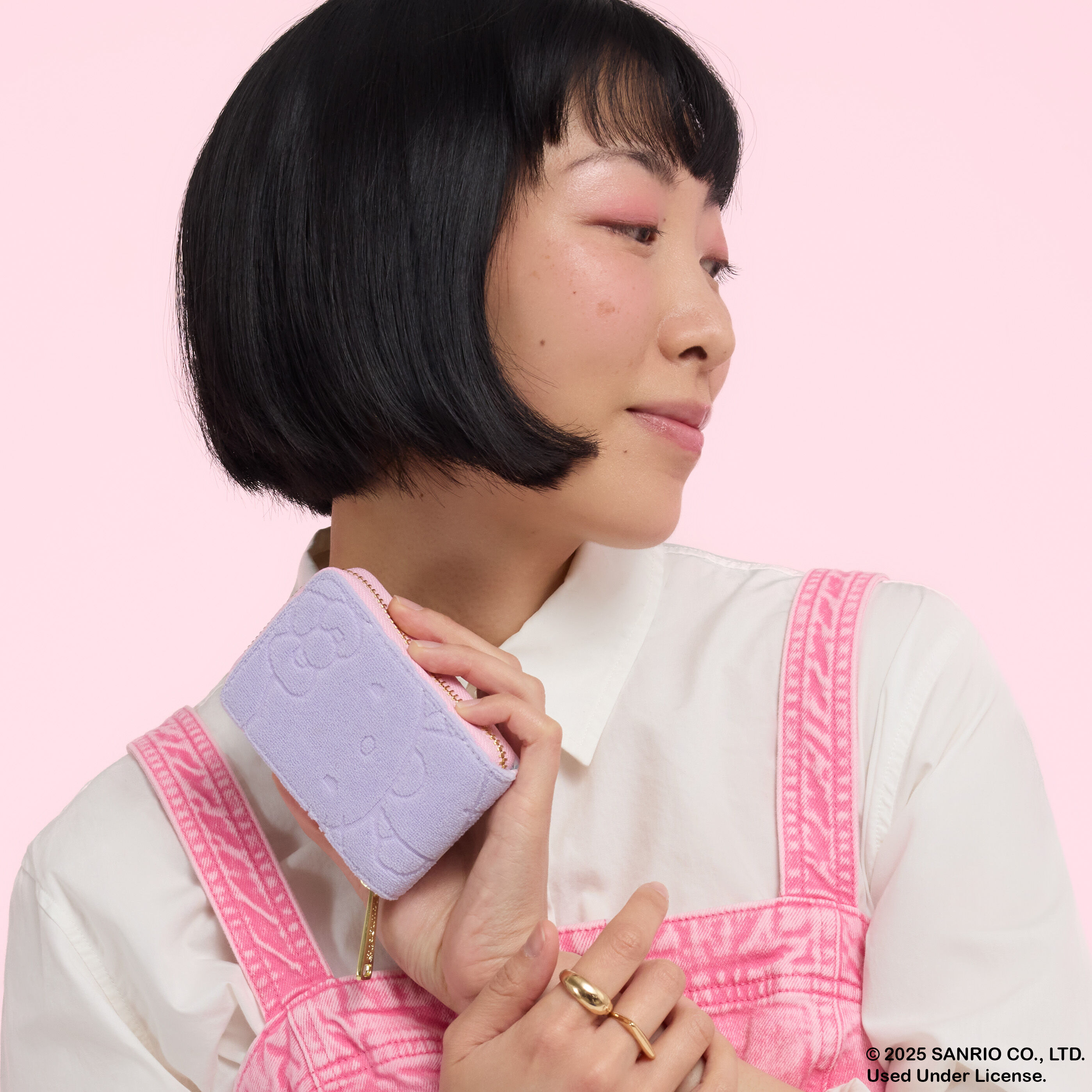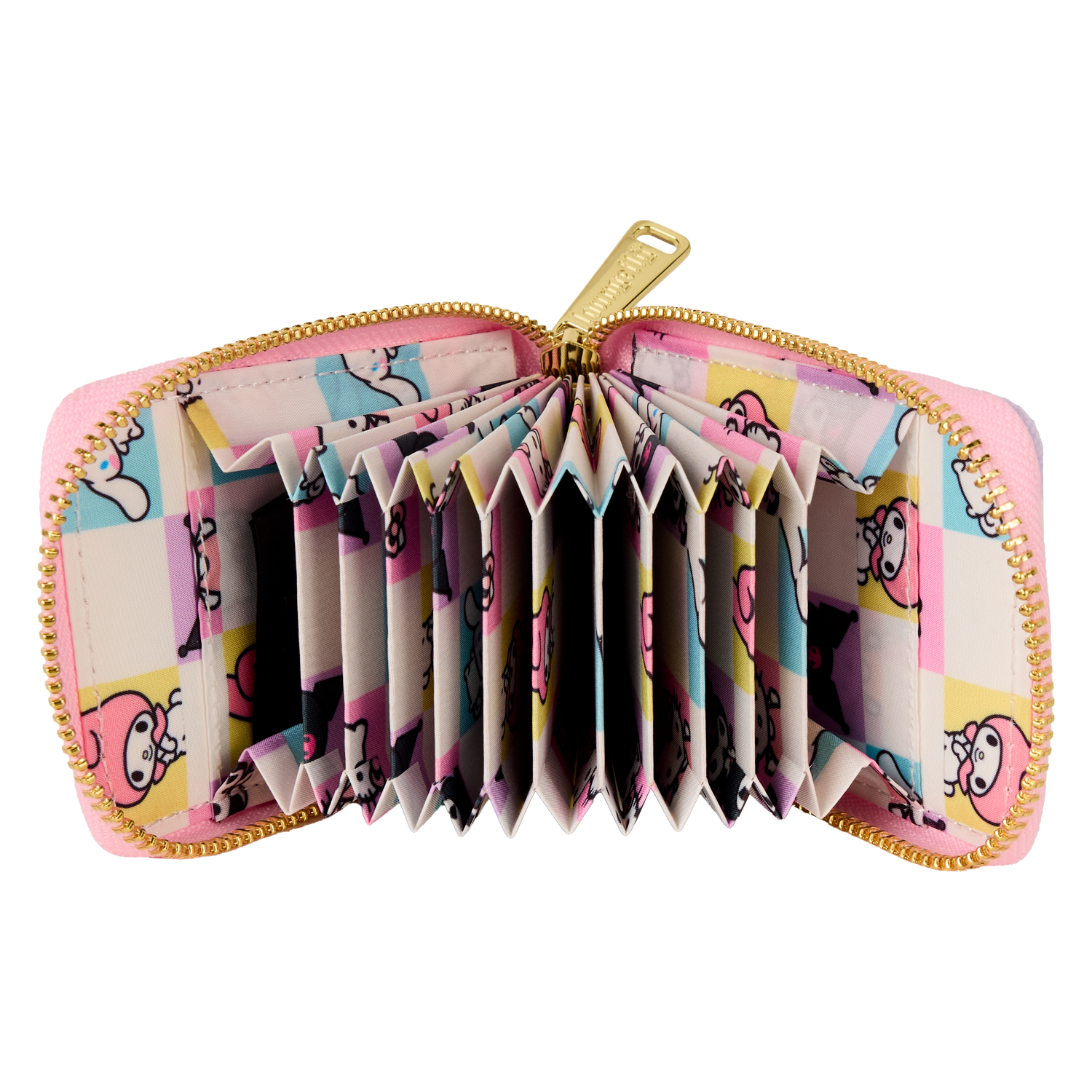 This wallet is the perfect accessory to take along with you everywhere. On the front, you’ll find purple terry cloth material with Hello Kitty’s outline “burned out” of it. Turn it around to find a pastel checker print! Inside, there are plenty of accordion-style card slots featuring Hello Kitty and her friends!